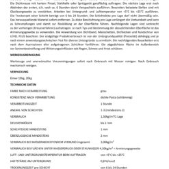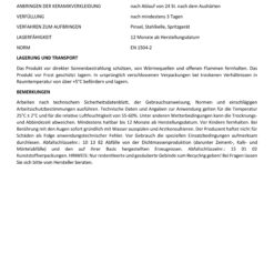 Der Hersteller haftet nicht für unsachgemäße oder nicht bestimmungsgemäße Produktverwendung oder eine Produktverwendung in anderen Bedingungen als hier angegeben. Die Gewährleistung gilt nur für die Produktqualität. Die fachgemäße und somit erfolgreiche Produktverwendung wird von uns nicht überprüft. Weder Hersteller noch ermächtigter Vertreter können die Haftung für Schäden übernehmen, die in Folge einer unsachgemäßen Verwendung oder Lagerung des Produktes entstehen. Das Unternehmenspersonal darf ausschließlich die technischen Angaben übermitteln, die in diesem technischen Merkblatt enthalten sind. Produktinformationen, die über die hier genannten Angaben hinausgehen, bedürfen der schriftlichen Bestätigung. Bei Fragen lassen Sie sich bitte vom Hersteller beraten. Mit Erscheinen dieses Technischen Merkblattes verlieren alle früheren Ausgaben ihre Gültigkeit. Es gilt dieses technische Merkblatt. Alle vorigen Merkblätter werden hierdurch ersetzt.