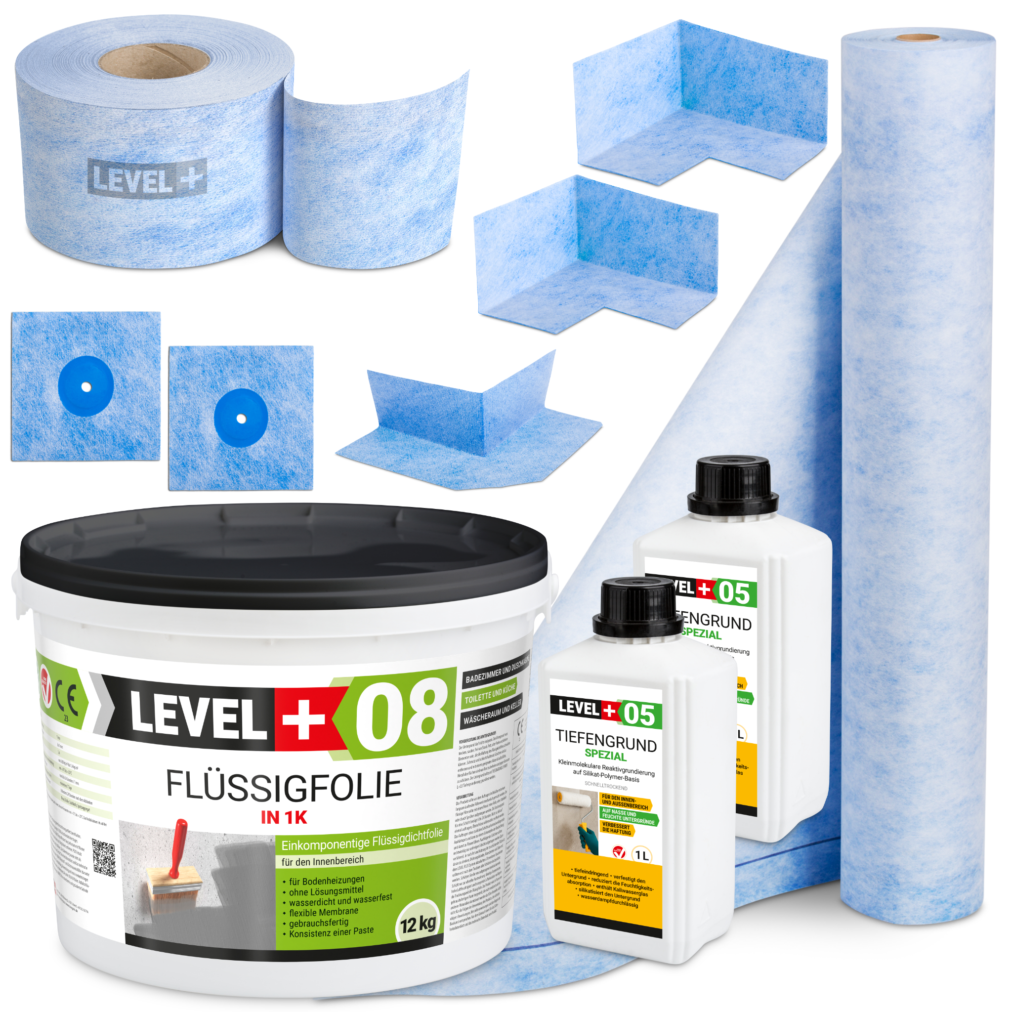 Dichtset für ca 10m² Abdichtung Dusche Bad Dichtbahn 12Kg Flüssigfolie LEVEL+ SET42
