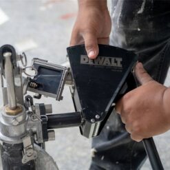 Ein Eckenapplikator wird in Verbindung mit einem Eckenfinisher („Winkelkopf“) verwendet, um Trockenbau-Spachtelmasse über abgeklebte Innen- und Außenecken aufzutragen. Der DEWALT Eckenapplikator (auch als „Winkelbox“ oder „Hockeybox“ bezeichnet) zeichnet sich durch präzisionsgefertigte Komponenten und ein schweres, aber leichtes Aluminiumgehäuse aus, das für hervorragende Haltbarkeit und einfache Reinigung harteloxiert wurde. Der DEWALT Winkelapplikator verfügt über eine qualitativ hochwertige Abstreifdichtung, die im Labor getestet wurde und keinen sichtbaren Verschleiß oder Leckagen aufweist. Der geschweißte Edelstahlkonus sorgt für eine gleichmäßige Dosierung, einfache Reinigung und lange Lebensdauer. Die verlängerbaren DEWALT Griffe für die Eckenapplikatoren sind sind in zwei Längen erhältlich: