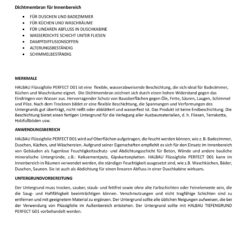 HALBAU Flüssigfolie PERFECT D01 ist eine flexible, wasserabweisende Beschichtung, die sich ideal für Badezimmer, Küchen und Waschräume eignet. Die Dichtmembran zeichnet sich durch einen hohen Widerstand gegen das Eindringen von Wasser aus. Hervorragender Schutz von Bauoberflächen gegen Öle, Fette, Säuren, Laugen, Schimmel und Pilze. Nach dem Trocknen bildet er eine flexible Beschichtung, die Spannungen und VerFormungen des Untergrunds gut überträgt, nicht reißt oder abblättert und wasserfest ist. Das Produkt ist keine Endbeschichtung. Die Beschichtung bietet einen fertigen Untergrund für die Verlegung aller Ausbaumaterialien, d. h. Fliesen, Terrakotta, Holzfußböden usw. HALBAU Flüssigfolie PERFECT D01 wird auf Oberflächen aufgetragen, die feucht werden können, wie z. B. Badezimmer, Duschen, Küchen, und Wäschereien. Aufgrund seiner Eigenschaften empfiehlt es sich für den Einsatz im Innenbereich von Gebäuden als fugenlose Feuchtigkeitsschutz- und Abdichtungsschicht für Beton, Wände und andere bauliche mineralische Untergründe, z.B.: Kalkzementputz, Gipskartonplatten. HALBAU Flüssigfolie PERFECT D01 kann im Innenbereich in Räumen verwendet werden, die ständiger Feuchtigkeit ausgesetzt sind, wie z.B. Waschküchen, Bäder, Duschen, Saunen. Sie ist auch als Abdichtung für einen linearen Abfluss in einer Duschkabine wirksam.