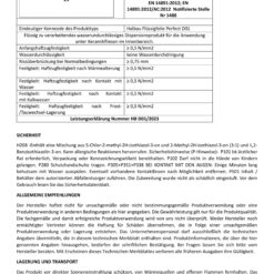 Der Hersteller haftet nicht für unsachgemäße oder nicht bestimmungsgemäße Produktverwendung oder eine Produktverwendung in anderen Bedingungen als hier angegeben. Die Gewährleistung gilt nur für die Produktqualität. Die fachgemäße und somit erfolgreiche Produktverwendung wird von uns nicht überprüft. Weder Hersteller noch ermächtigter Vertreter können die Haftung für Schäden übernehmen, die in Folge einer unsachgemäßen Verwendung oder Lagerung des Produktes entstehen. Das Unternehmenspersonal darf ausschließlich die technischen Angaben übermitteln, die in diesem technischen Merkblatt enthalten sind. Produktinformationen, die über die hier genannten Angaben hinausgehen, bedürfen der schriftlichen Bestätigung. Bei Fragen lassen Sie sich bitte beim Hersteller beraten. Mit Erscheinen dieses Technischen Merkblattes verlieren alle früheren Ausgaben ihre Gültigkeit. Es gilt dieses technische Merkblatt. Alle vorigen Merkblätter werden hierdurch ersetzt.