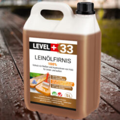 Leinöl Firnis 7×1 Liter, Holzschutz, Doppelt Gekocht, Holzpflege, Holzöl, Schnelle Trocknung, Natürlicher Holzschutz, Harzfrei LEVEL+33