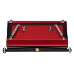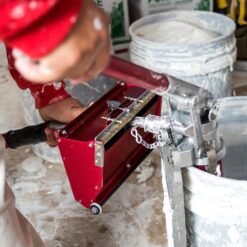 LEVEL5 Flachkästen haben ein hochwertiges Aluminiumgehäuse, das für extreme Haltbarkeit und einfache Reinigung eloxiert wurde. Sie sind mit einem flexiblen Messingklingenhalter und einer Edelstahlklinge sowie mit Kufen und Schuhen aus Edelstahl ausgestattet. Ein Einstellrad mit Krone bietet sechs Einstellungen (einschließlich „weit offen“), so dass die ideale Menge an Spachtelmasse auf die Wand aufgetragen werden kann, um gleichmäßige, professionelle Ergebnisse zu gewährleisten. Die LEVEL5 Flachkästen verfügen über eine hochwertige Druckplattendichtung aus Verbundwerkstoff und abgeschrägte Kanten am Kastengehäuse, die ein leichtes Öffnen und Schließen gewährleisten. Die Druckplatte selbst lässt sich zur einfachen Reinigung extra weit öffnen. Die LEVEL5-Flachboxen sind mit verschleißfreien Rädern mit langlebigen Lagern ausgestattet, die einen besonders reibungslosen Betrieb gewährleisten. Die MEGA-Flachboxen fassen ca. 30 % mehr Material als die Standard-Flachboxen, so dass weniger Hin- und Herfahrten zur Pumpe erforderlich sind. Der Nachteil ist, dass die MEGA-Flachboxen aufgrund ihrer größeren Höhe im gefüllten Zustand sperriger und schwerer sind. Letztendlich ist die Wahl zwischen den beiden Arten eine Frage der persönlichen Vorliebe.