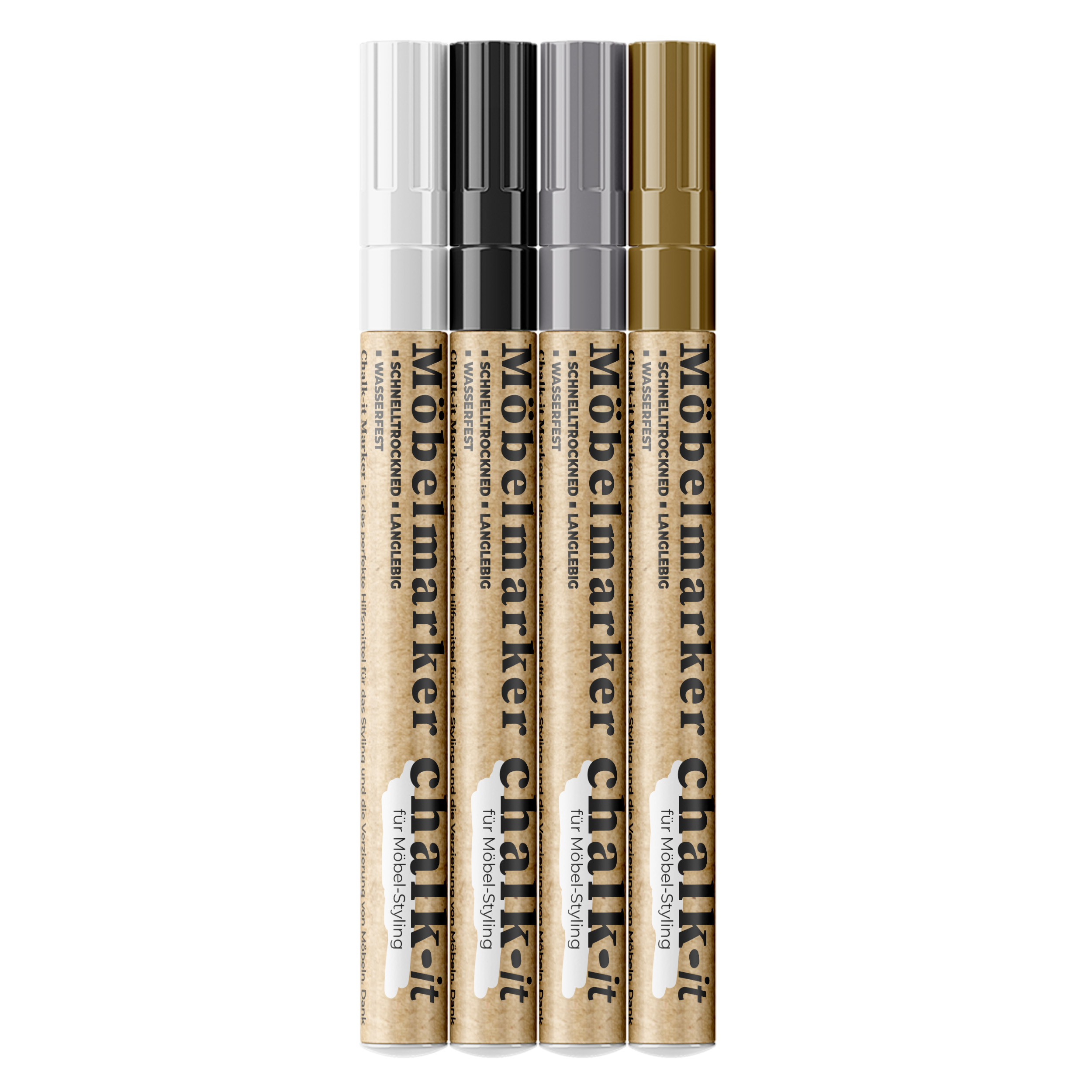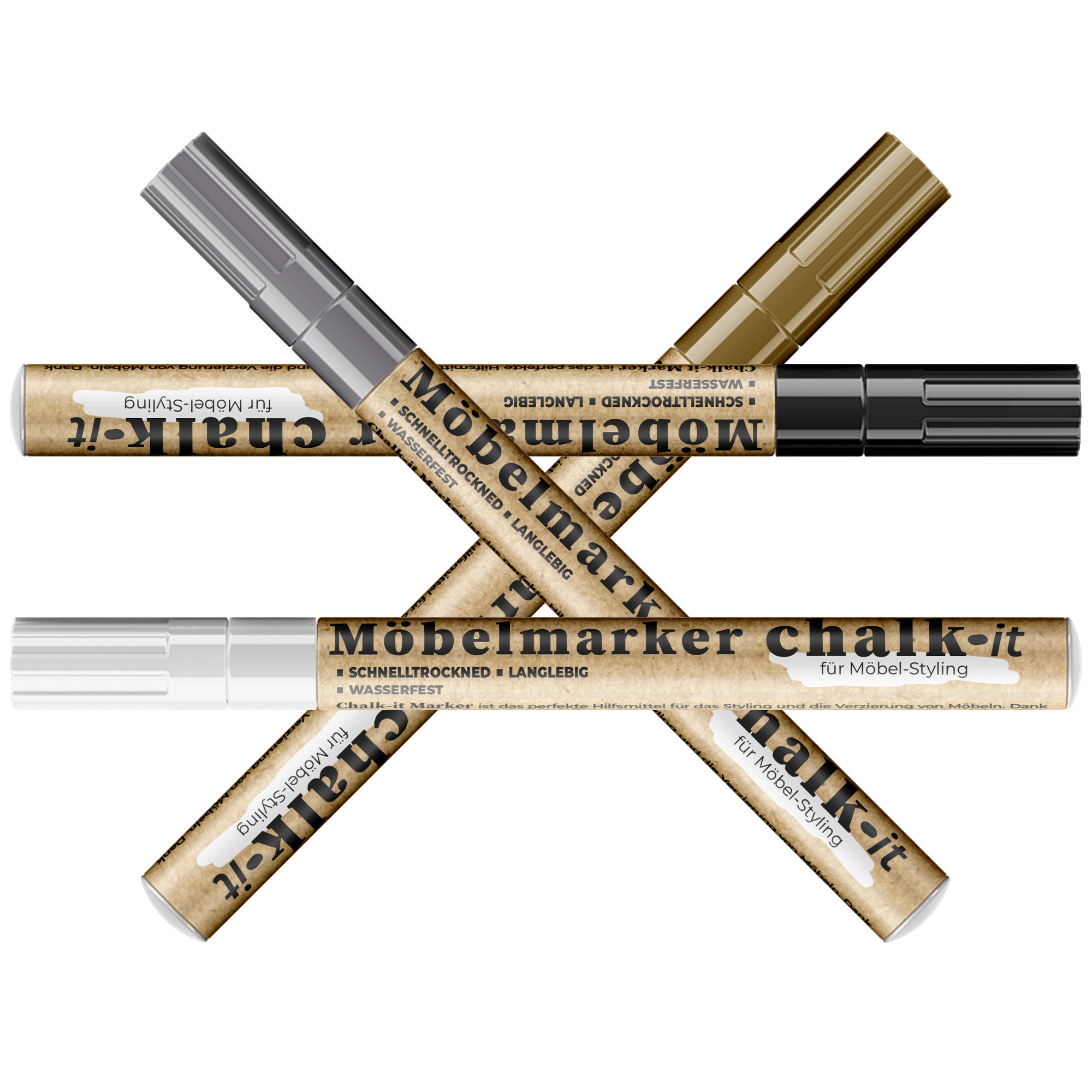 Chalk-it Möbel Marker Set 4x 10ml Holz Glas Metal Design Ersatzspitze Wasserfest