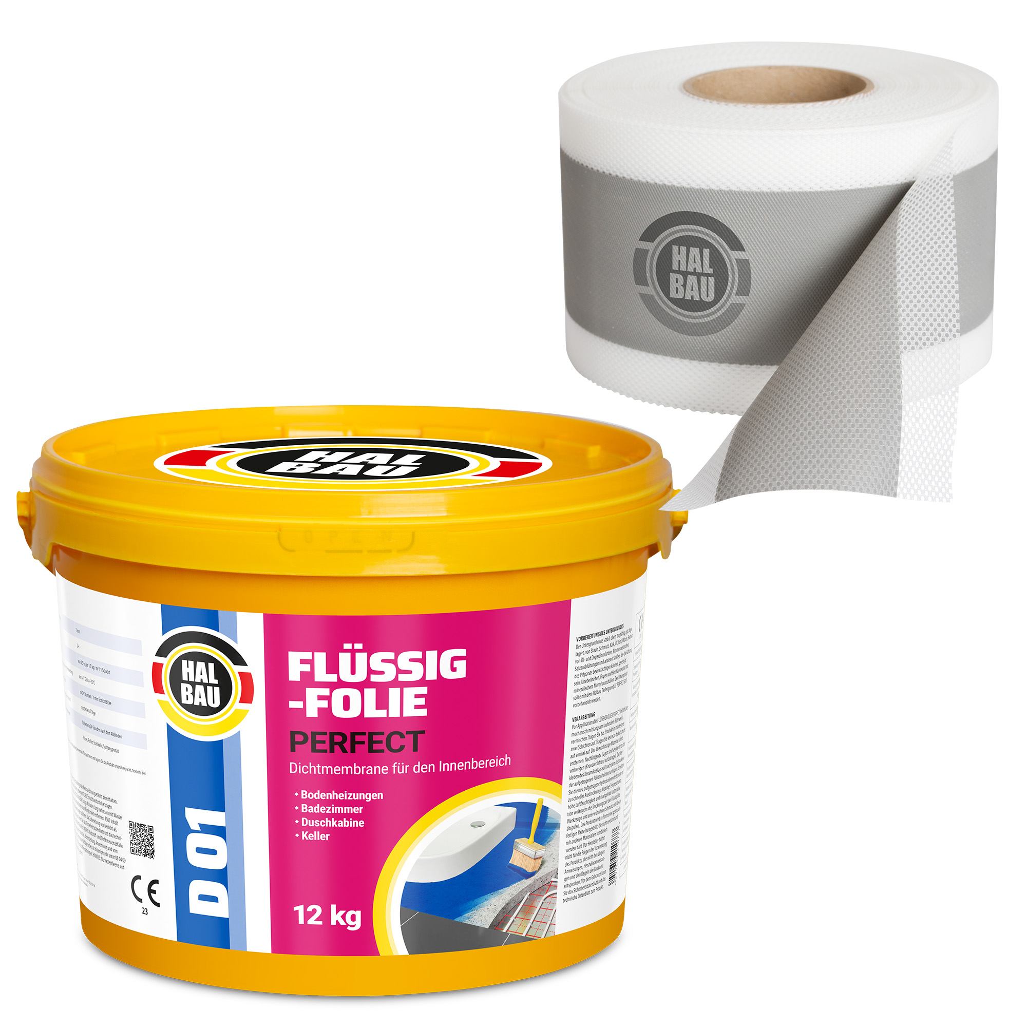 HALBAU Flüssigfolie PERFECT D01 ist eine flexible, wasserabweisende Beschichtung, die sich ideal für Badezimmer, Küchen und Waschräume eignet. Die Dichtmembran zeichnet sich durch einen hohen Widerstand gegen das Eindringen von Wasser aus. Hervorragender Schutz von Bauoberflächen gegen Öle, Fette, Säuren, Laugen, Schimmel und Pilze. Nach dem Trocknen bildet er eine flexible Beschichtung, die Spannungen und Verformungen des Untergrunds gut überträgt, nicht reißt oder abblättert und wasserfest ist. Das Produkt ist keine Endbeschichtung. Die Beschichtung bietet einen fertigen Untergrund für die Verlegung aller Ausbaumaterialien, d. h. Fliesen, Terrakotta, Holzfußböden usw. HALBAU Flüssigfolie PERFECT D01 wird auf Oberflächen aufgetragen, die feucht werden können, wie z. B. Badezimmer, Duschen, Küchen, und Wäschereien. Aufgrund seiner Eigenschaften empfiehlt es sich für den Einsatz im Innenbereich von Gebäuden als fugenlose Feuchtigkeitsschutz- und Abdichtungsschicht für Beton, Wände und andere bauliche mineralische Untergründe, z.B.: Kalkzementputz, Gipskartonplatten. HALBAU Flüssigfolie PERFECT D01 kann im Innenbereich in Räumen verwendet werden, die ständiger Feuchtigkeit ausgesetzt sind, wie z.B. Waschküchen, Bäder, Duschen, Saunen. Sie ist auch als Abdichtung für einen linearen Abfluss in einer Duschkabine wirksam.