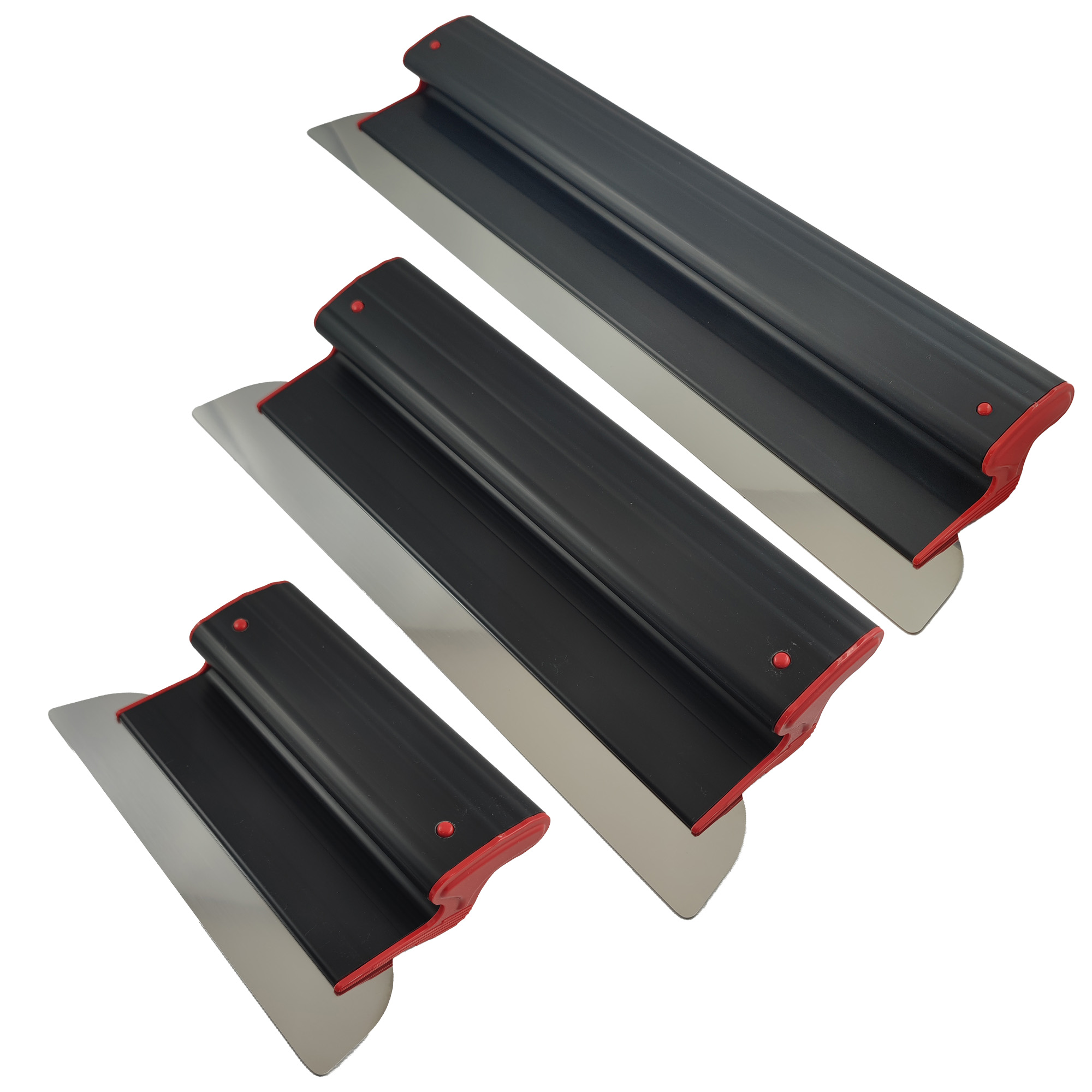 Das professionelle Flächenspachtel für Spachtelmassen erhöht die Geschwindigkeit, die Präzision, die Effizienz und den Arbeitskomfort bei allen Arten von Spachtel- und Glättungsarbeiten mit feinkörnigen Spachtel- und Dekorationsmassen, die im Bauwesen üblich sind. Die hochpräzise 0,3 mm Klinge in einem stabilen Aluminium-Griffprofil ist ideal für Arbeiten an traditionellen Betonwänden und für Trockenbauarbeiten auf Gipskarton. Unter allen Bedingungen lässt sich die Spachtelmasse mit der gleichen unglaublichen Sensibilität und Präzision führen.