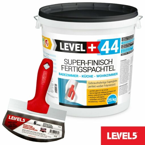 LEVEL+44 SUPER-FINISH FERTIGSPACHTEL + Level5 Eimerschaber Rostfrei 5-210