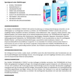 Der HALBAU TIEFENGRUND LF PERFECT G01 wird als Grundierung zur Untergrundverfestigung verwendet, um die Haftfestigkeit vor nachfolgenden Schichten zu erhöhen. Der TIEFENGRUND LF PERFECT wird für alte und neue saugfähige Flächen empfohlen wie Beton, Porenbeton, Putze (Kalkzement-, Kalk-, Gipsputz), Platten (Zement-, Gips-, Gipskartonplatte). Das Produkt eignet sich für beheizte Bodenkonstruktionen. Der TIEFENGRUND G01 eignet sich ausgezeichnet als Grundierung unter Gipsfeinputze, Spachtelgipse, Klebstoffe, Gipsputze, Zementputze, Estriche, selbstausgleichende Fließestriche. Der TIEFENGRUND LF PERFECT ist als Grundiermittel vor allem für nachfolgende HALBAU Polymer- und Polymerzementbeschichtungen, wasserdichte IsolieL+embranen, Zement- und Dispersionsklebstoffe für Keramikfliesen vorgesehen. Es ist anwendbar für vertikale und horizontale Flächen in Innenräumen als auch im Freien. Bei schwach saugenden Untergründen kann HALBAU TIEFENGRUND G01 mit Wasser im Verhältnis 1:1 gleichmäßig verdünnt werden. Das Produkt ist wasserdampfdurchlässig und belastet die Umwelt nicht.